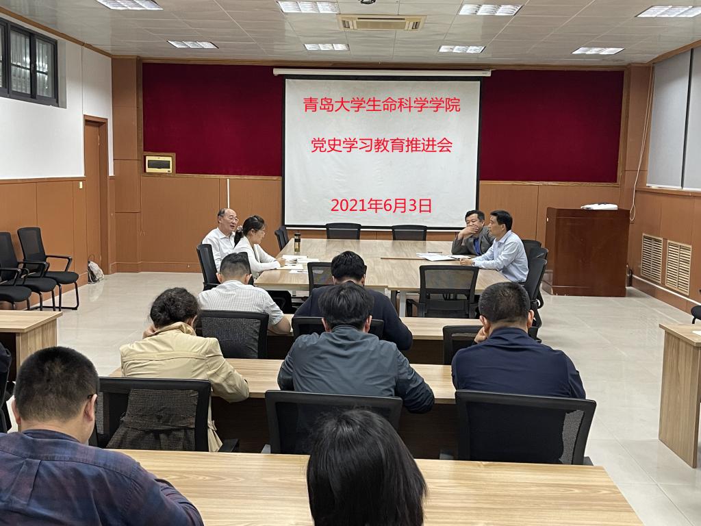 为深入贯彻习近平总书记关于党史学习教育系列重要论述和党中央决策部署,全面落实上级党史学习教育推进会议精神,紧紧围绕“学党史、悟思想、办实事、开新局”目标要求,6月3日,太阳集团网tyc9728在浮山校区博雅楼103会议室召开党史学习教育推进会,全体教职工党员参加本次会议,会议由学院党委书记薛冰主持。