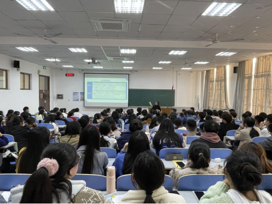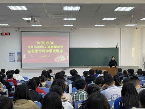 自党史学习教育开展以来,学院按照“我为群众办实事”工作要求,从学生实际需求出发,不断加强我院学风建设,激发学生英语学习兴趣,提高英语学习热情,切实提升我院学生英语四六级应试水平。11月18日,学院邀请到公共外语教育学院盛春媛老师在博知楼101室举办活力生命论坛第20讲《多维备战大学英语四六级》专题讲座,2020级全体本科生参加本次讲座,活动由2020级本科生辅导员张海洋老师主持。