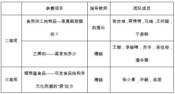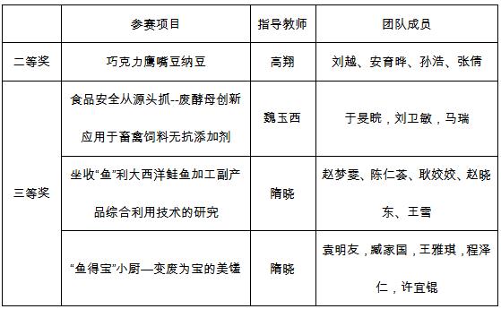 食品加工与安全创新设计大赛获奖情况:
