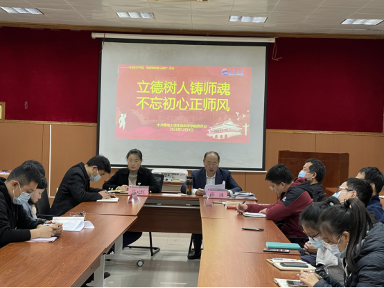 薛书记强调,师德师风建设是一项长期性且十分重要的工作,学院党委将建立健全师德师风长效规范体制,以高质量党建引领新时代师德师风建设,完善师德师风问题调查处置机制,强化师德师风警示教育,学院党政领导班子要做好教师思想动态研判、监督与整改,对发现的师德师风问题,要采取“零容忍”的坚决态度,从重从快,严肃处理。同时,班子成员要提升突发舆情应对处置能力,对突发舆情,要做到快速反应、及时发声、主动回应社会关切,及时做好舆论引导工作。教师个人要加强师德修养,严于律己,把教书育人和自我修养结合起来,增强遵守新时代教师职业行为准则的思想自觉和行动自觉,坚守为党育人、为国育才的初心,不断涵养高尚师德,做党和人民满意的“四有”好老师。