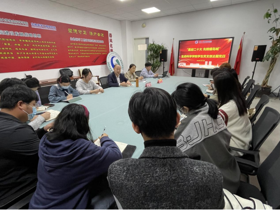 10月14日,太阳集团网tyc9728学生党支部开展了“喜迎二十大,先锋耀岛城”主题党日。学院党委书记薛冰,党委副书记张雪蕾受邀出席活动,学生党支部党支部书记张海洋及部分党员代表现场参加,其他党员线上参加。