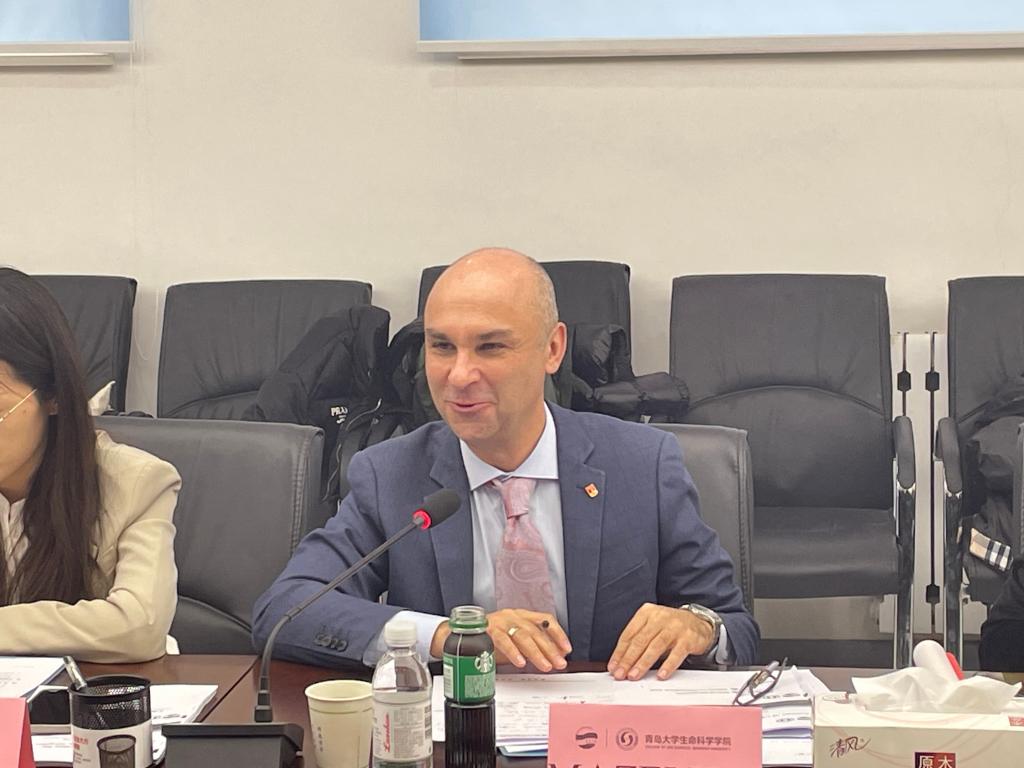 薛冰首先对莫斯科国立大学副校长MAZEI院士一行来访表示热烈欢迎,希望此次来访能够增加彼此了解,加强学术交流与合作,开启双方师生交流新篇章。