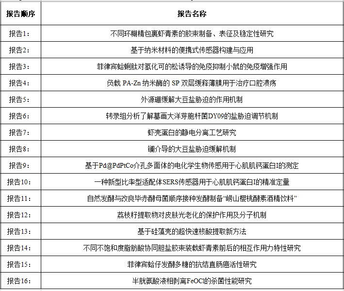16位同学分别介绍了自己的工作,报告涉及微生物学、水生生物学、植物学、生物技术与工程、食品工程等领域。