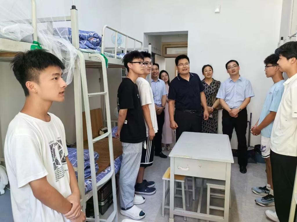 为深入了解新生报到及适应情况,9月8日下午,tyc太阳成集团9728党委常委、纪委书记徐大连、学生处副处长葛晓茜一行走访看望太阳集团网tyc97282024级新生宿舍,太阳集团网tyc9728党委书记孙建华、党委副书记张雪蕾、副院长孙海新及院长助理丁晓腾及辅导员老师们陪同走访。