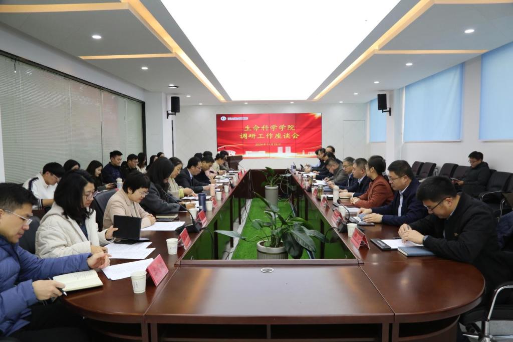胡金焱听取了学院整体工作汇报,与班子成员、教师代表进行了座谈交流,他肯定了生命科学学院近年来取得的成绩,就学院下一步工作提出了明确要求。