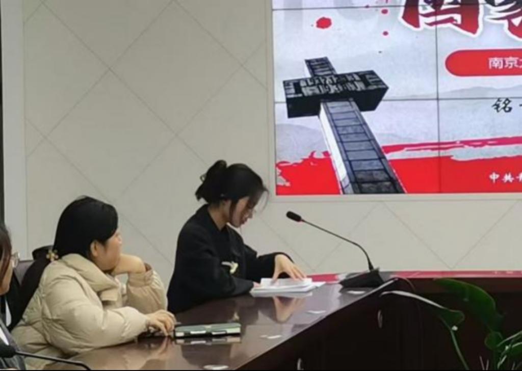 活动在主持人兰文斐沉稳而坚定的声音中拉开帷幕,她提到南京大屠杀死难者国家公祭日的设立旨在让我们铭记历史教训,珍爱来之不易的和平。随后,党员同志们共同观看了纪录片《1937 南京记忆》第一集并进行了观后感交流分享,党员王悦和李彤同志先后上台分享了自己观看纪录片的感受与思考,深刻地让我们认识到战争和暴力的残酷性,以及和平与发展的重要性。