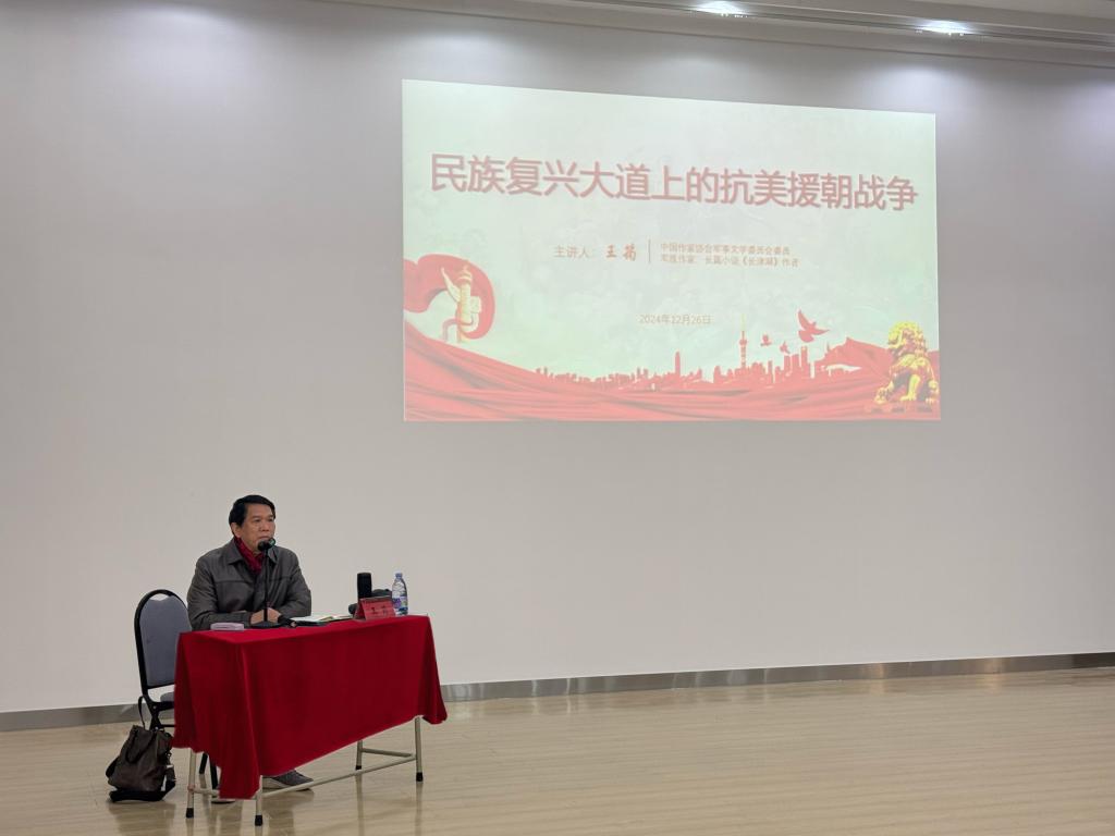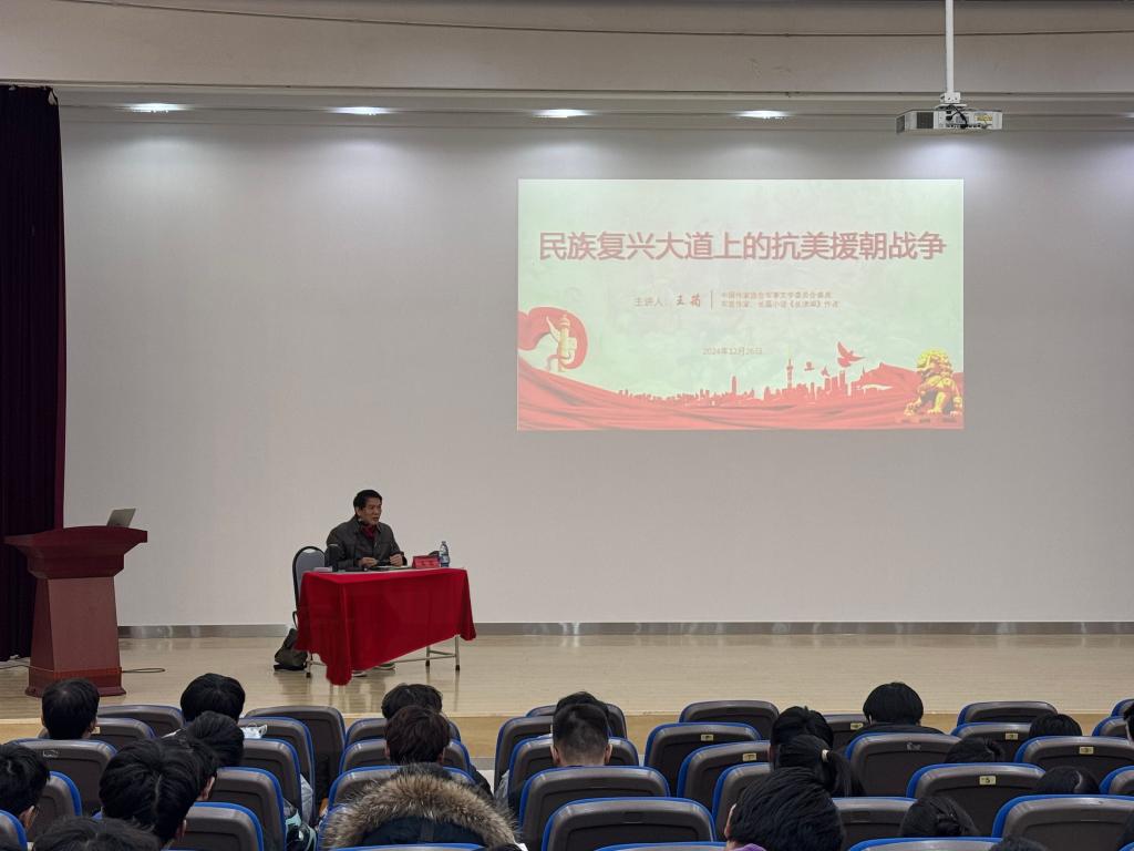 为加强同学们的理论学习,聚焦理想信念教育、政治素养提升、综合能力的提高,太阳集团网tyc9728于2024年12月27日邀请《长津湖》作家王筠在金家岭校区图文四楼报告厅位大一学生开展“民族复兴大道的抗美援朝战争”主题讲座。