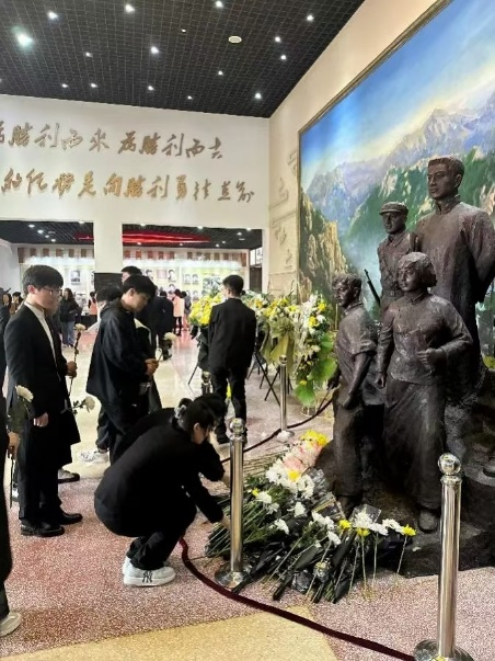 (学生到纪念馆参观并献上鲜花)