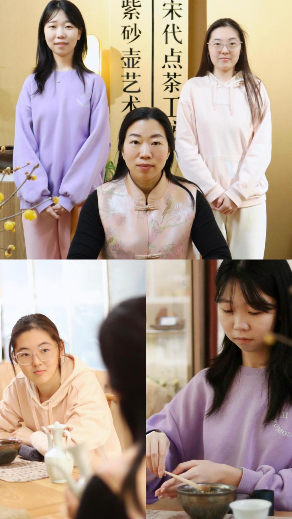 2月15日,实践团前往李沧区宋代点茶非遗工坊进行体验。同时,实践团邀请到非遗宋代点茶21代传承人、青岛中华职教社非遗专委会秘书长邱娜老师进行指导。邱老师以各朝代的茶文化为导入,激发实践团成员的学习兴趣。随后带领实践团成员了解点茶过程中相关器具的名称及功能。详细学习宋代点茶技艺的手法——七汤法,并在茶盏中绘制“茶百戏”。实践团成员在体验中领略点茶文化的魅力,也对非遗文化有了更深的认识。