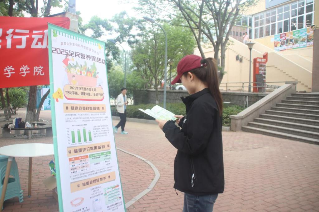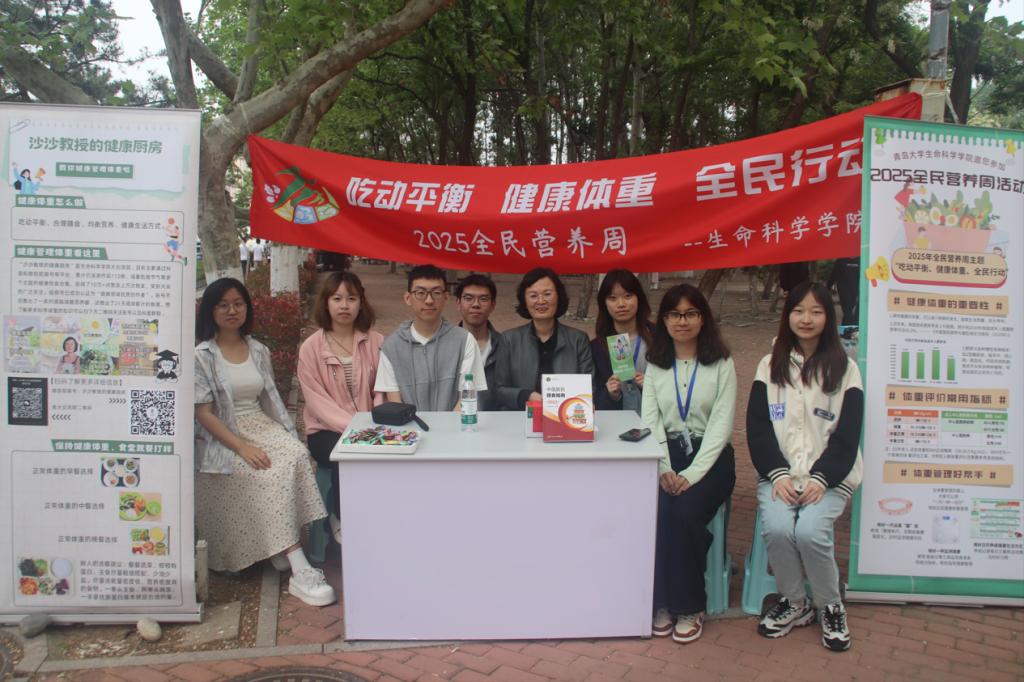 健康体重关系到每个人的身体健康、生活质量和未来发展。针对我国体重超重肥胖超过一半的严峻形势,国家卫健委启动了为期三年的体重管理年行动。为帮助我校师生树立体重管理的科学理念,落实吃动平衡助力健康体重行动,太阳集团网tyc9728学生会和大创小组合作在“2025全民营养周”来临之际,于5月14日在tyc太阳成集团9728浮山校区仁园餐厅外举办了全民营养周科普宣传路演活动。太阳集团网tyc9728党委副书记张雪蕾老师为活动负责人、太阳集团网tyc9728沙珍霞教授受邀作为咨询专家,学院志愿者辅助宣传。