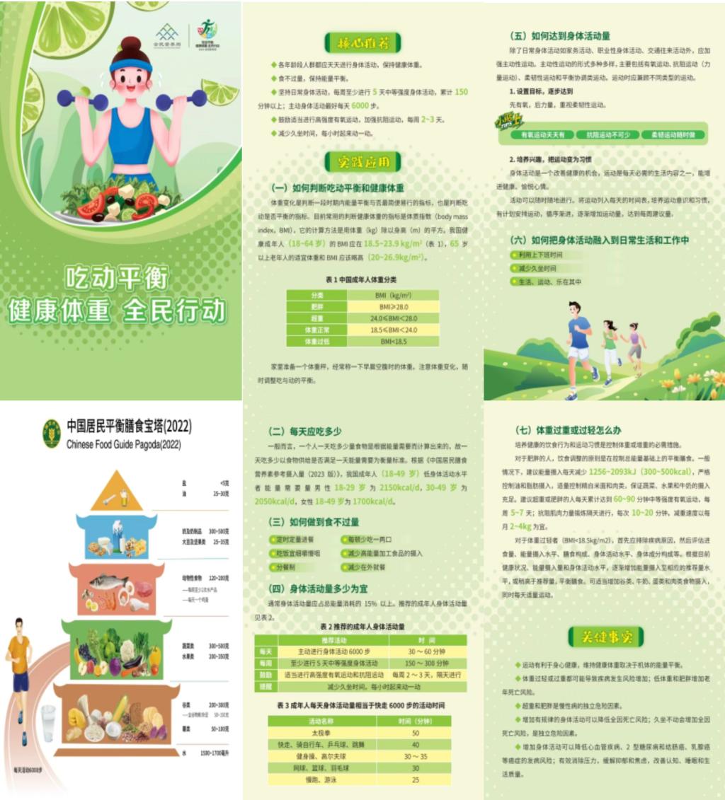 本次活动,太阳集团网tyc9728精心准备了制作了120份中国营养学会发布的全民营养周宣传折页,内容涵盖中国居民膳食宝塔(2022版)、吃动平衡核心推荐、如何判断吃动平衡和健康体重、每天应该吃多少、身体活动量、如何把运动融入日常生活、体重过重、过轻怎么办等。