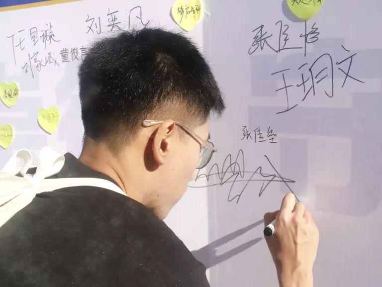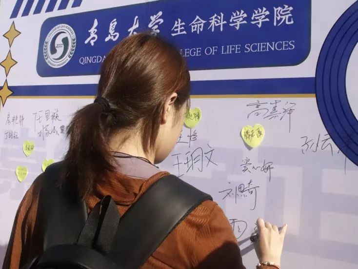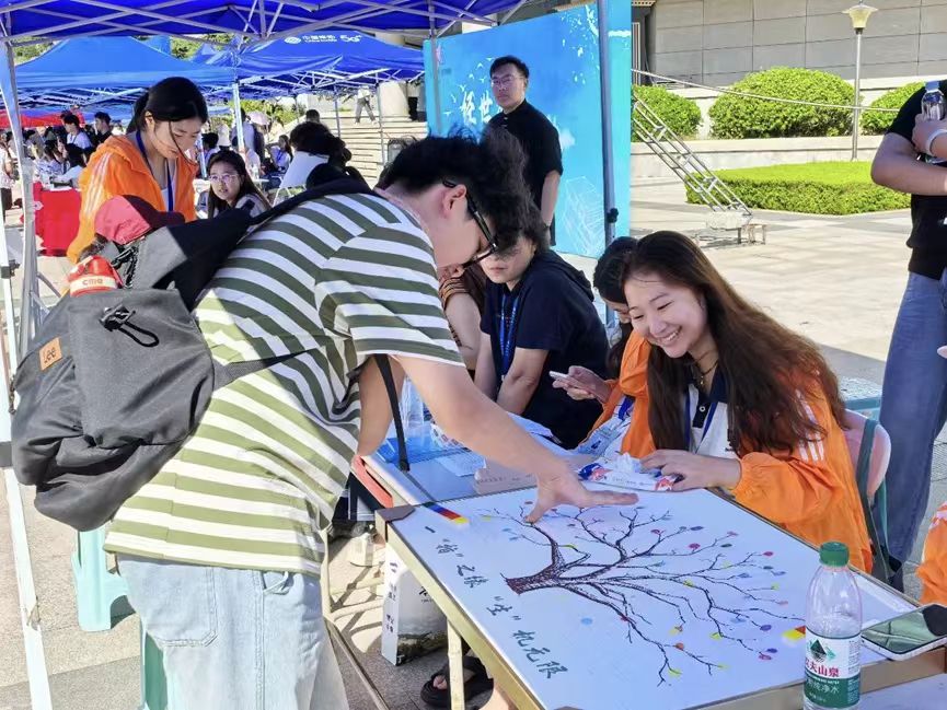 现场洋溢着温馨热烈的氛围,新生们纷纷在主题背景墙上签名留念,在便利贴上书写大学寄语,并在象征生命之树的展板上按下彩色指纹。一个个指纹逐渐汇聚成枝繁叶茂的大树,寓意新生将在太阳集团网tyc9728的沃土上扎根成长,共同描绘生命科学的精彩画卷。
