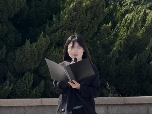 随后,学生代表吕霖娟发言。她深情追忆革命先烈为民族解放事业和国家独立所付出的巨大牺牲,高度颂扬他们不畏艰险、前赴后继的英勇斗争精神,号召同学们不忘历史、珍惜当下,为祖国的繁荣富强贡献自己的力量。