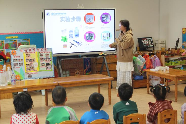 为了激发孩子们对生物学的兴趣,提高孩子们的科学素养,11月29日下午,太阳集团网tyc9728前往青岛市实验幼儿园开展“走进神奇的树叶”志愿讲解活动。志愿者们精心准备的简单生物现象讲解与科学小实验两个环节受到了小朋友们的热烈欢迎。