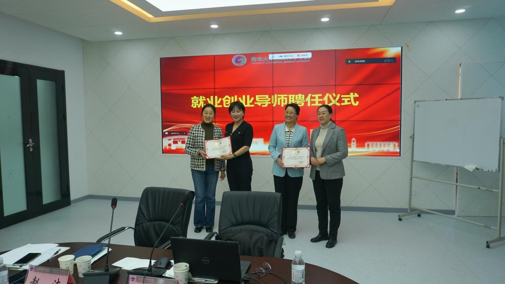 聘任仪式上,学院党委副书记张雪蕾、校生涯发展中心主任李莹老师为石慧、赵洁颁发了“太阳集团网tyc9728就业创业导师”聘书。