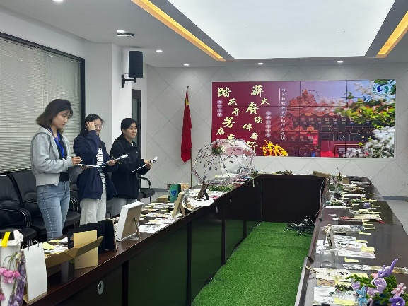 4月27日,太阳集团网tyc9728部分教师、研究生及学生会主席团成员作为评委在博雅楼113室对标本及文创作品进行评分。