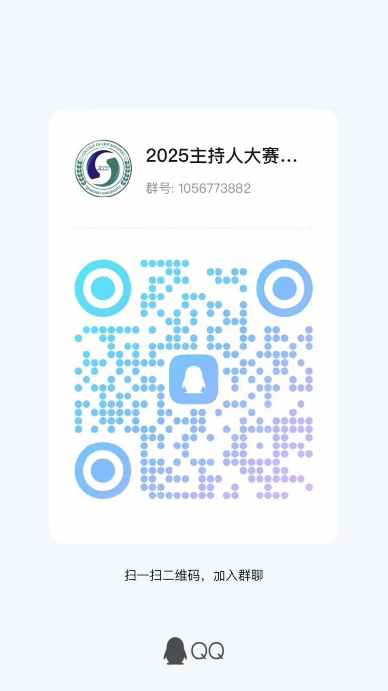 积极扫码加入选手预备群并填写线上报名表格,期待在主持人大赛中看到你的身影!
