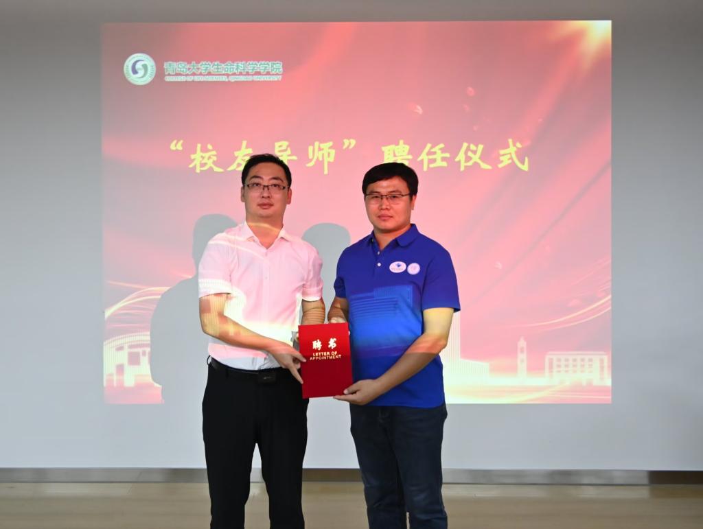 会议伊始,学院党委书记为优秀校友王滨颁发“校友导师”聘书,搭建在校生与业界精英的沟通桥梁。经验分享环节,王滨校友结合自身从业经历,剖析生命科学学科价值,同时鼓励新生扎根专业、敢为人先,为新生明晰专业方向、传递成长力量。